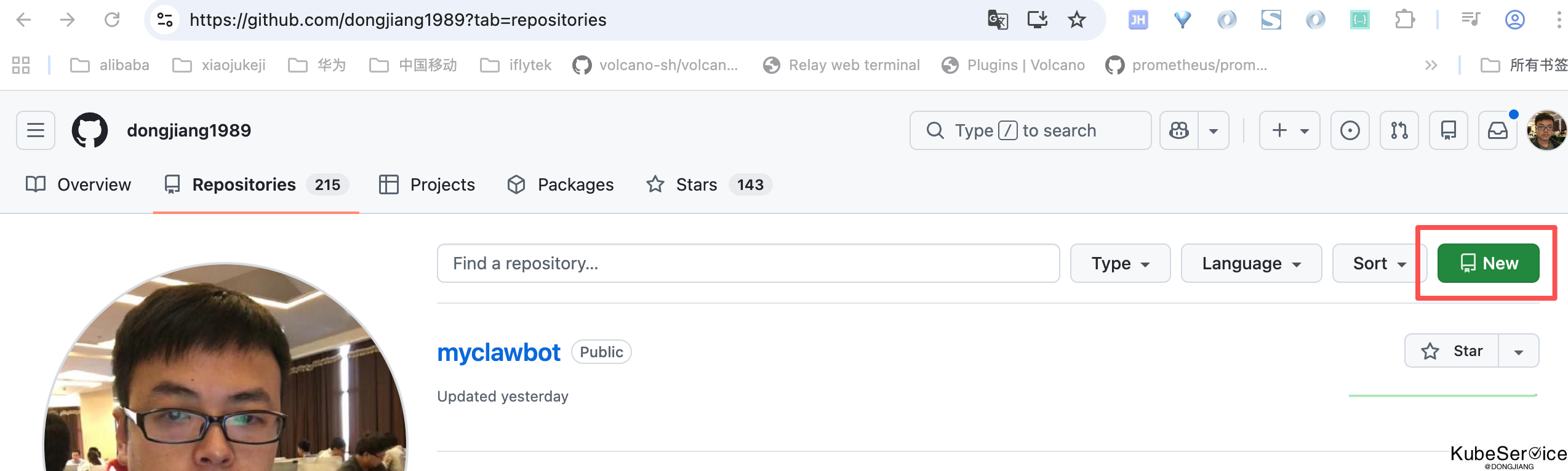首先,在您自己的github账号下,创建一个repositories 仓库: