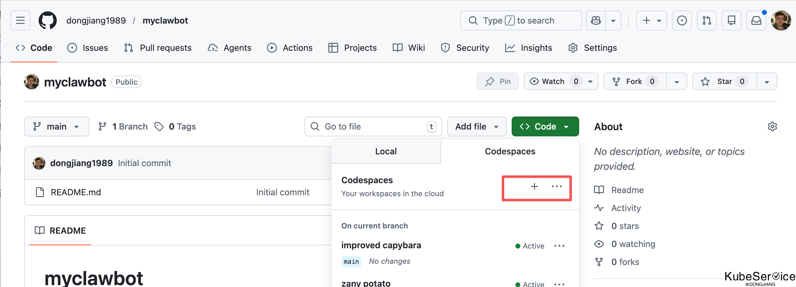 l@dongjiang1989 ➜ /workspaces/myclawbot (main) $ cd /home/codespace/